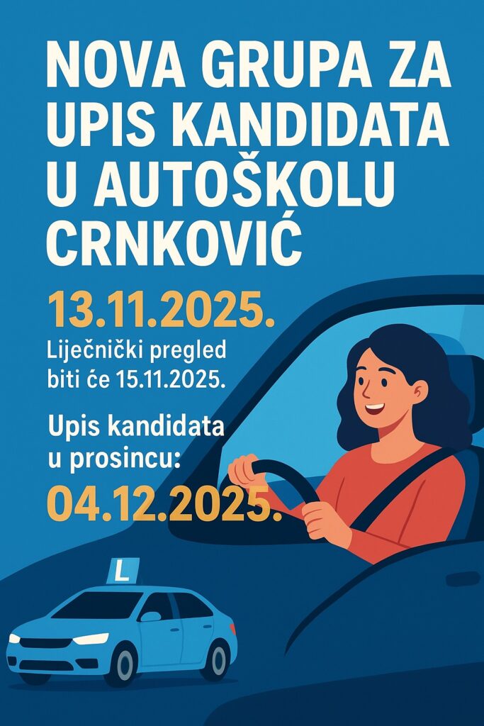 Upise možete obaviti u AUTOŠKOLI «CRNKOVIĆ» svakim danom od 8:00–15:30 sati, te subotom od 9–11 sati.
