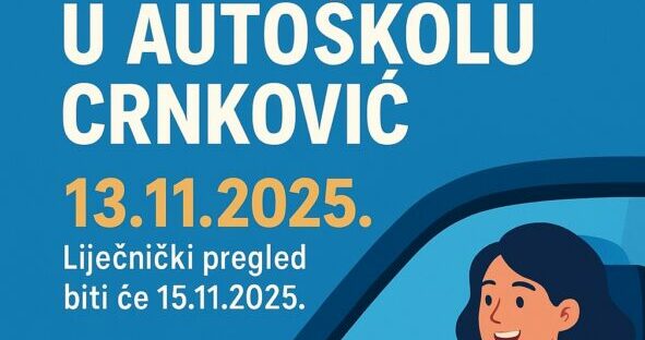 Upise možete obaviti u AUTOŠKOLI «CRNKOVIĆ» svakim danom od 8:00–15:30 sati, te subotom od 9–11 sati.